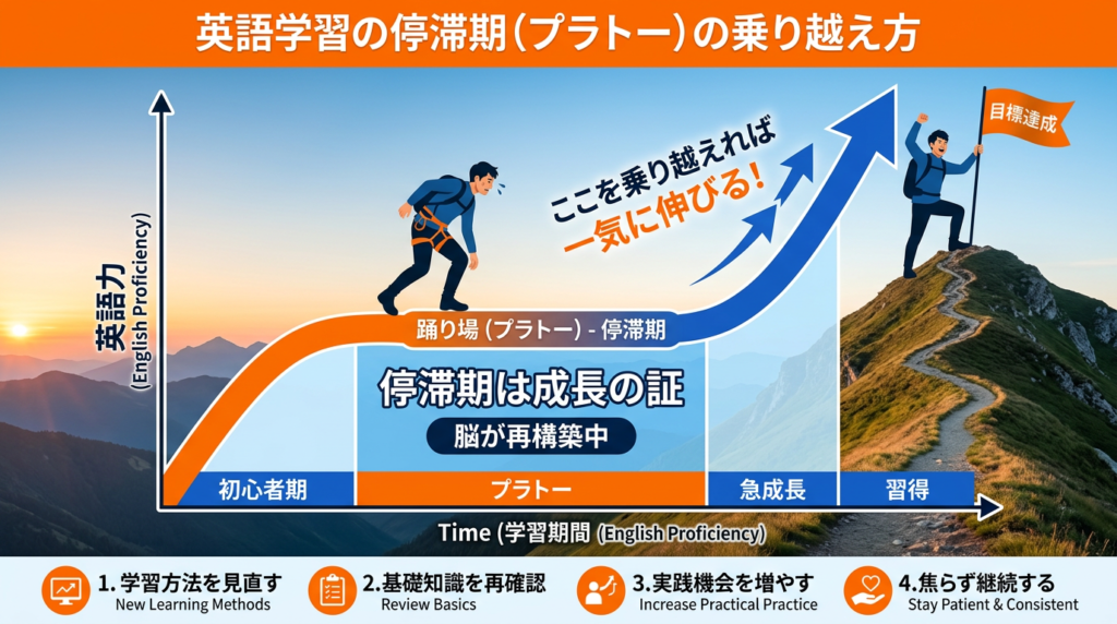 多くの競合記事が見落としている、しかし英語学習者にとって極めて重要なトピックがあります。それが「停滞期(プラトー)」です。