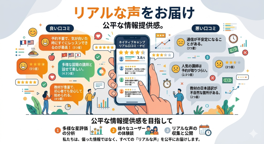 「月額7,480円で受け放題って本当にお得なの?」「講師の質にばらつきがあると聞いたけど大丈夫?」「コインって何?追加料金が発生するって本当?」——ネイティブキャンプの受講を検討しているあなたは、こんな疑問を持っていませんか?
