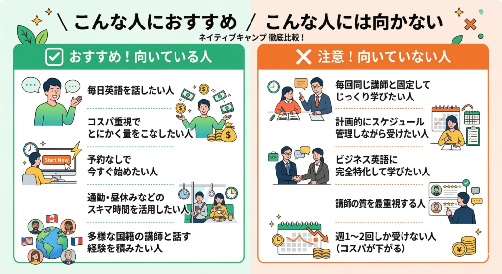 ネイティブキャンプはこんな人におすすめ【向いている・向いていない】